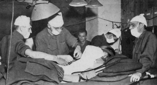 Surgeons were high ranking officers contracted into the US Army during WWII. There is an array of specialists assigned to Evacuation Hospitals including facial reconstruction, orthopedics, and more.